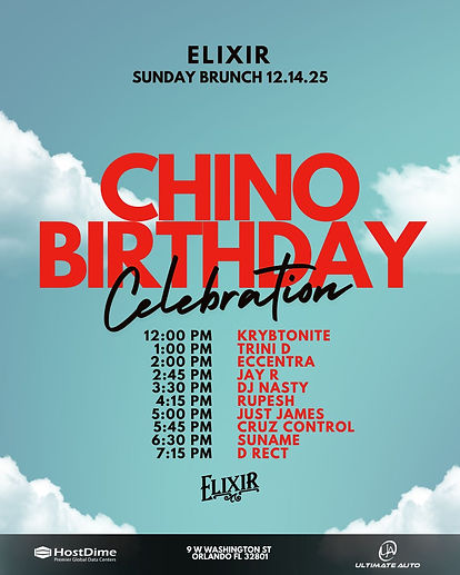 Beyond the decks, Chino is ½ of the DJ/Producer duo BREIKTHRU, blending energy-driven sounds with global influences. He’s also the creator of HOUSE & COFFEE and Co-Founder of DAYLITE ORLANDO, two platforms that spotlight music, culture, and community.​
